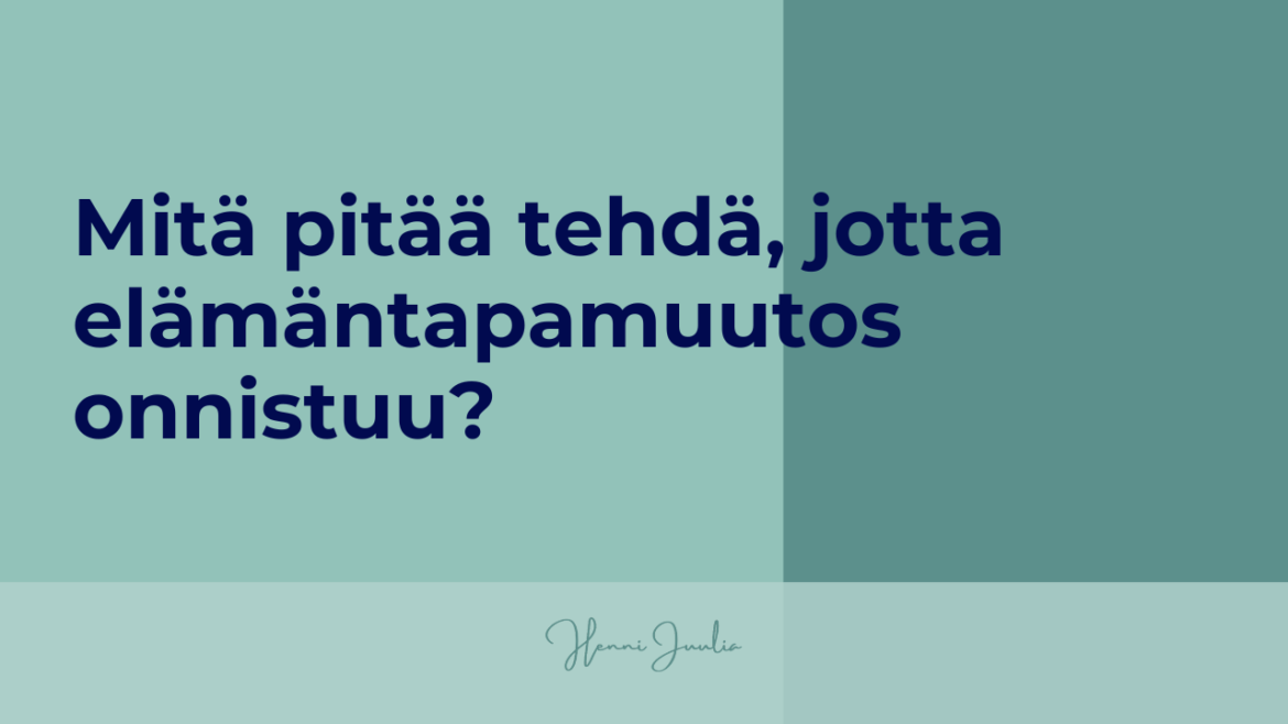 Onnistunut elämäntapamuutos ei ole vain ruokavalion muuttamista tai liikunnan lisäämistä – olisikin! Sitä olen itse toivonut ja varmaan sinäkin. Valitettavasti ja onneksi se on kuitenkin kokonaisvaltainen prosessi, joka kattaa kaikki…